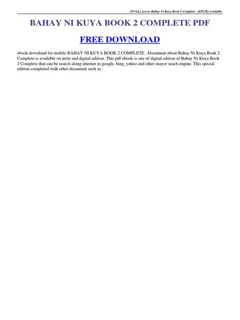 Read Online Bahay Ni Kuya Book 2 Complete Download ManyBooks PDF